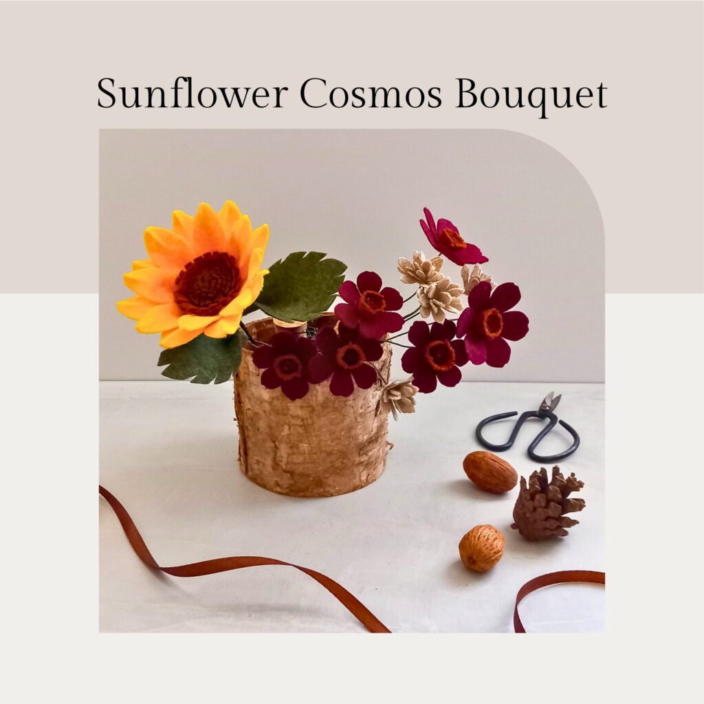 I host in-person workshops at Hive Design Studio in Sanderstead, where you’ll learn to craft your own felt flower arrangements with guidance and encouragement.